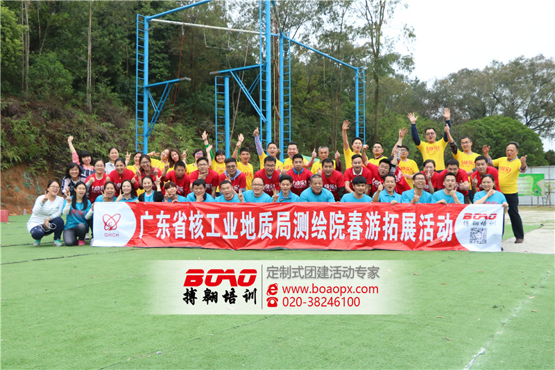 由于伙伴們崗位的特殊性,小部分新老員工之間甚至連一次面都沒(méi)碰著,此次活動(dòng)正是給大家架起了一座相互認(rèn)識(shí)以及溝通的橋梁。為了增強(qiáng)團(tuán)隊(duì)的協(xié)作力以及凝聚力,同事促進(jìn)成員之間的相互溝通、交流,廣東省核工業(yè)地質(zhì)局測(cè)繪院聯(lián)合搏翱廣州拓展培訓(xùn)公司在廣州五龍山莊拓展基地開(kāi)展了一次春游拓展活動(dòng)。搏翱培訓(xùn)策劃團(tuán)隊(duì)為其設(shè)計(jì)活動(dòng)項(xiàng)目如下:團(tuán)隊(duì)破冰、團(tuán)隊(duì)組建、珠行萬(wàn)里、信任背摔、高空挑戰(zhàn)、穿越電網(wǎng)、同舟共濟(jì)。