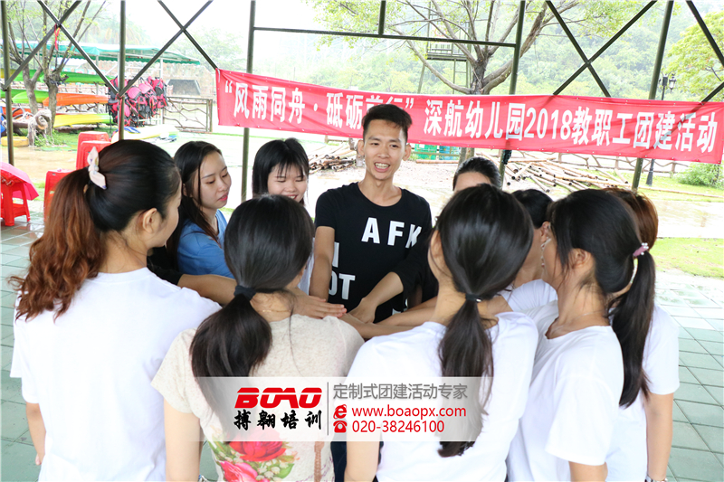 參與本次活動(dòng)的人員為深航幼兒園全體教職員工,為了促進(jìn)老師間的相互溝通與交流,此次活動(dòng)深航幼兒園聯(lián)合搏翱廣州拓展培訓(xùn)公司于花都比奇山莊拓展訓(xùn)練基地舉辦了為時(shí)一天的2018教職工團(tuán)建活動(dòng)。本次拓展活動(dòng)項(xiàng)目安排如下:開營(yíng)破冰、群龍取水、南水北調(diào)、動(dòng)力圈。