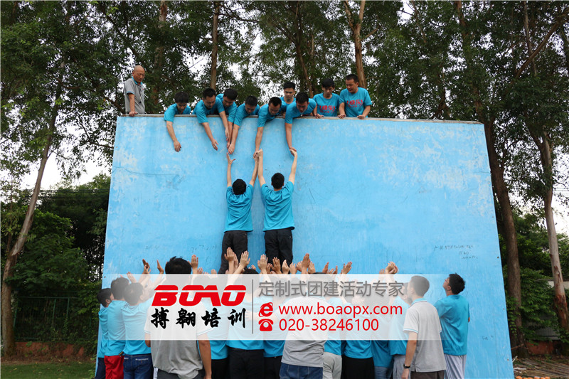 當我們全體伙伴到達廣州拓展培訓基地的時候,我們整隊換裝,然后開始了為期一天的體驗式拓展培訓活動。特別是在畢業(yè)墻拓展項目挑戰(zhàn)過程中,我們靠著團隊的意志力爆發(fā)出全身的能量,超越極限的團隊意識和團隊信任,在面對4.3米高的畢業(yè)墻的時候,我們每一個挑戰(zhàn)的伙伴從上往下看的時候都能夠看到一雙雙高舉的信任之手。挑戰(zhàn)畢業(yè)墻,讓我們一個個考驗團隊的任務,一次次的獲得收獲和感悟,雖然我們身體非常的累,但是我們意志力蓬勃,我們有著戰(zhàn)勝一切的意志和信念!