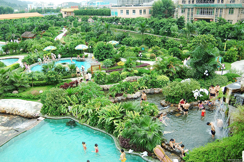 新銀盞溫泉度假村所用溫泉,假村內(nèi)設(shè)有各種功效不一的溫泉池八十多個(gè),溫泉水采自地表深180多深的溫礦泉,達(dá)到國家環(huán)保部門地表水環(huán)境質(zhì)量一級標(biāo)準(zhǔn)。經(jīng)巖層過濾無污染的泉脈,富含二十多種無放射性的微量元素,時(shí)常沐浴可以美白肌膚活化細(xì)胞,同是對糖尿病例、心腦血管疾病、神經(jīng)管能癥和慢性風(fēng)濕病等不良癥關(guān)皆有顯著療效。優(yōu)異的泉質(zhì),讓它享有“天南第一水”的美譽(yù)。 經(jīng)廣東省珠江水資源保護(hù)辦公室鑒定,水溫64攝氏度,水質(zhì)無色無味,透明潔凈,不受地表污染,其中硫離子含量為0.367毫克/升,重碳酸根含量為121.45毫克/升,PH值為8.47,且礦化度低(0.269—0.34毫克/升),多種有益人體健康的微量元素在水中呈離子狀態(tài),易被皮膚吸收,受于人體組織很強(qiáng)的活性作用,對高血壓、早期動(dòng)脈硬化、心肌炎、類風(fēng)濕性關(guān)節(jié)炎、肌腱炎、肌勞損、創(chuàng)傷后遺癥等疾病具有特殊的疾效。